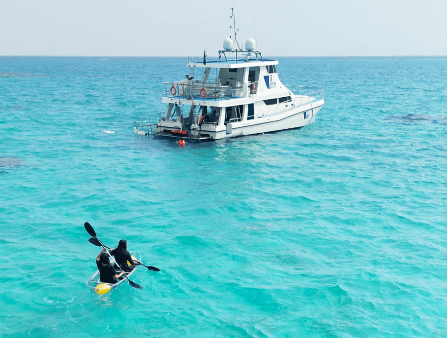 استمتع بتجربة فريدة من نوعها لمدة 6 ساعات واقضِ يوما جميلا مع العائلة والاصدقاء في منطقة أبو طير الشهيرة. حيث تنتظرك تجاربنا وانشطتنا المميزة والمياه الصافية. استمتع باللعب بالكاياك الشفاف حيث يمكنك رؤية المياه الفيروزية من خلاله واستمتع بتجربة السنوركل أو الغوص الاستكشافي، حيث ستستكشف عجائب الشعب المرجانية. واستمتع باوقات لا تنسى مع تجربة السي بوب ومنفوخات الفن اير